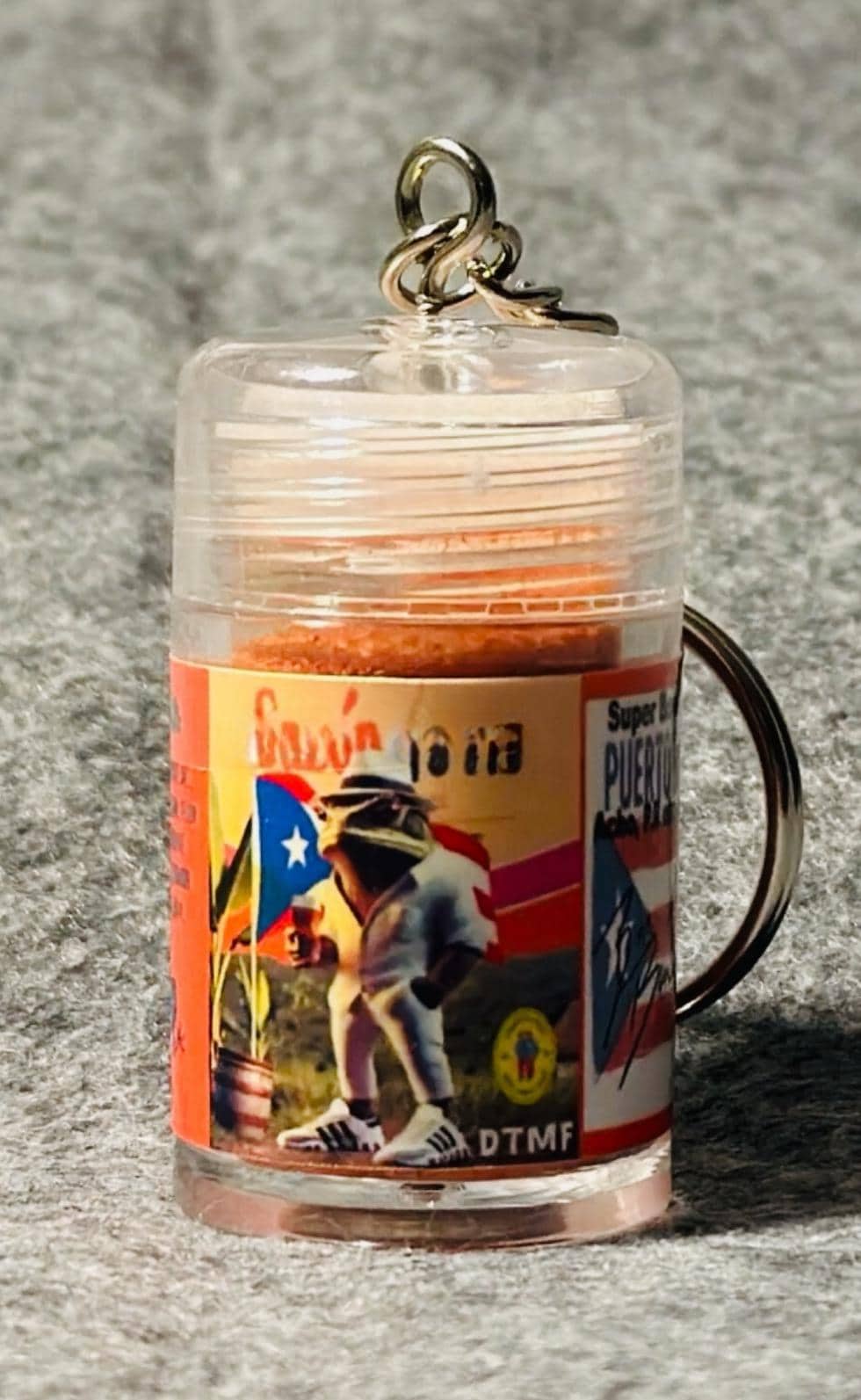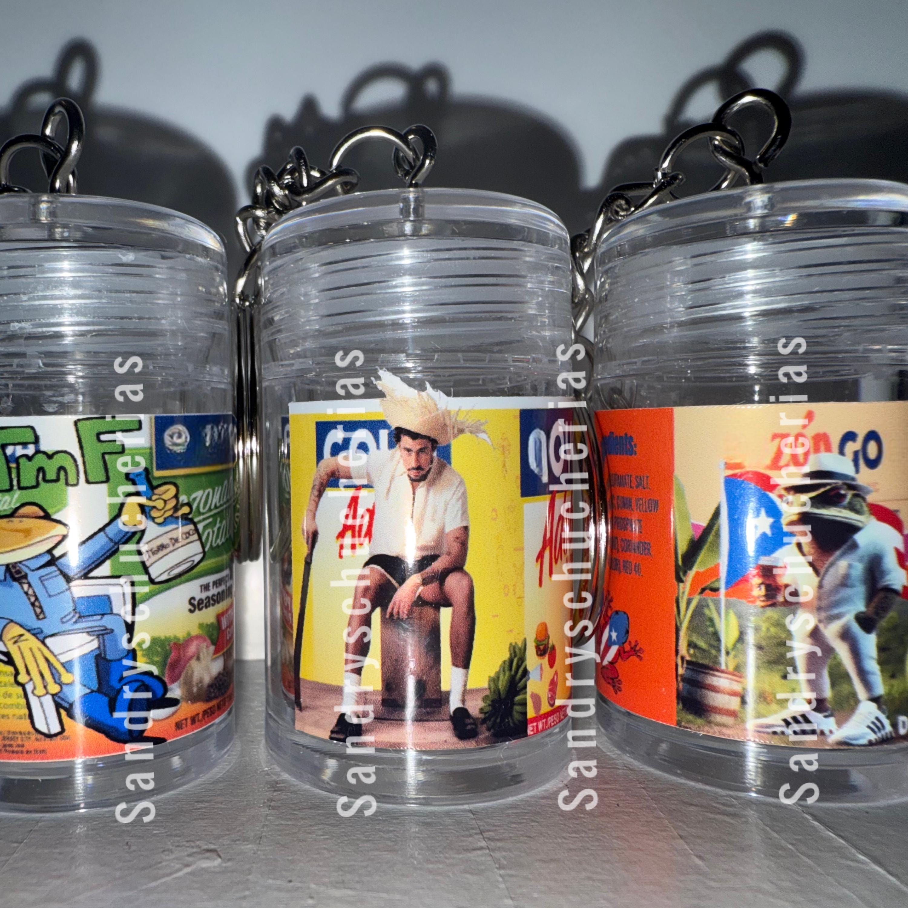 For the Heart of a Collector, our Halftime B Bunny Set is a limited time only 3 Classic Spanish Mini Keychain Seasoning set, including a One 3" Puerto Rico Pin, Three 2" Bunny pins and 3 Benny Stickers.