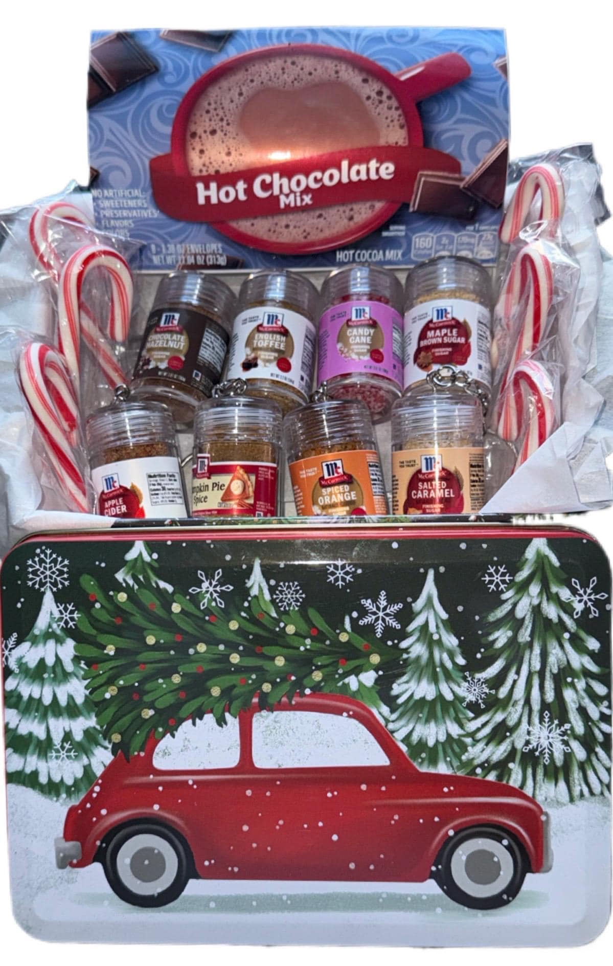 The 8 Set includes 8 different sugar seasonings, 4 Packets of Swiss Hot Chocolate and 8 Mini Candy Canes. A Gift any Parent Friend or child would love!